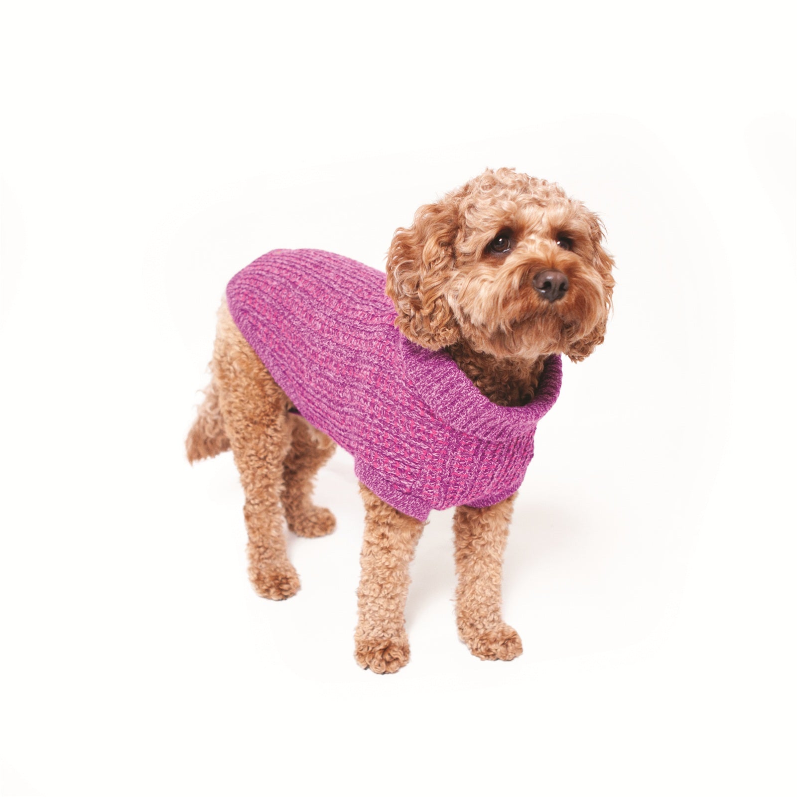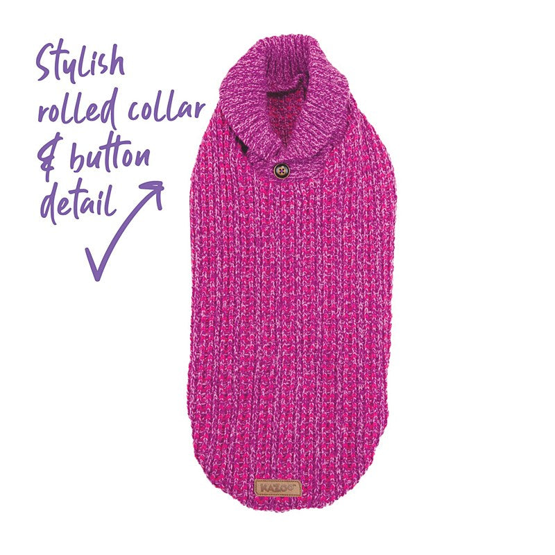 This chunky knit jumper with roll down collar is sure to become a classic in your dogs winter wardrobe. The thick knit makes it super warm and cosy for chilly days spent strolling or snuggling.