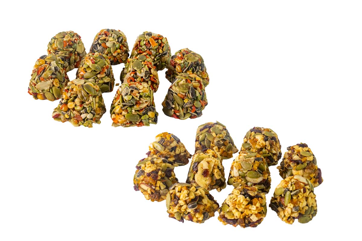 These yummy treats come in two flavours: Tropical Treats & Vital Veggies Each pottle contains 10 Parrot Pick treats